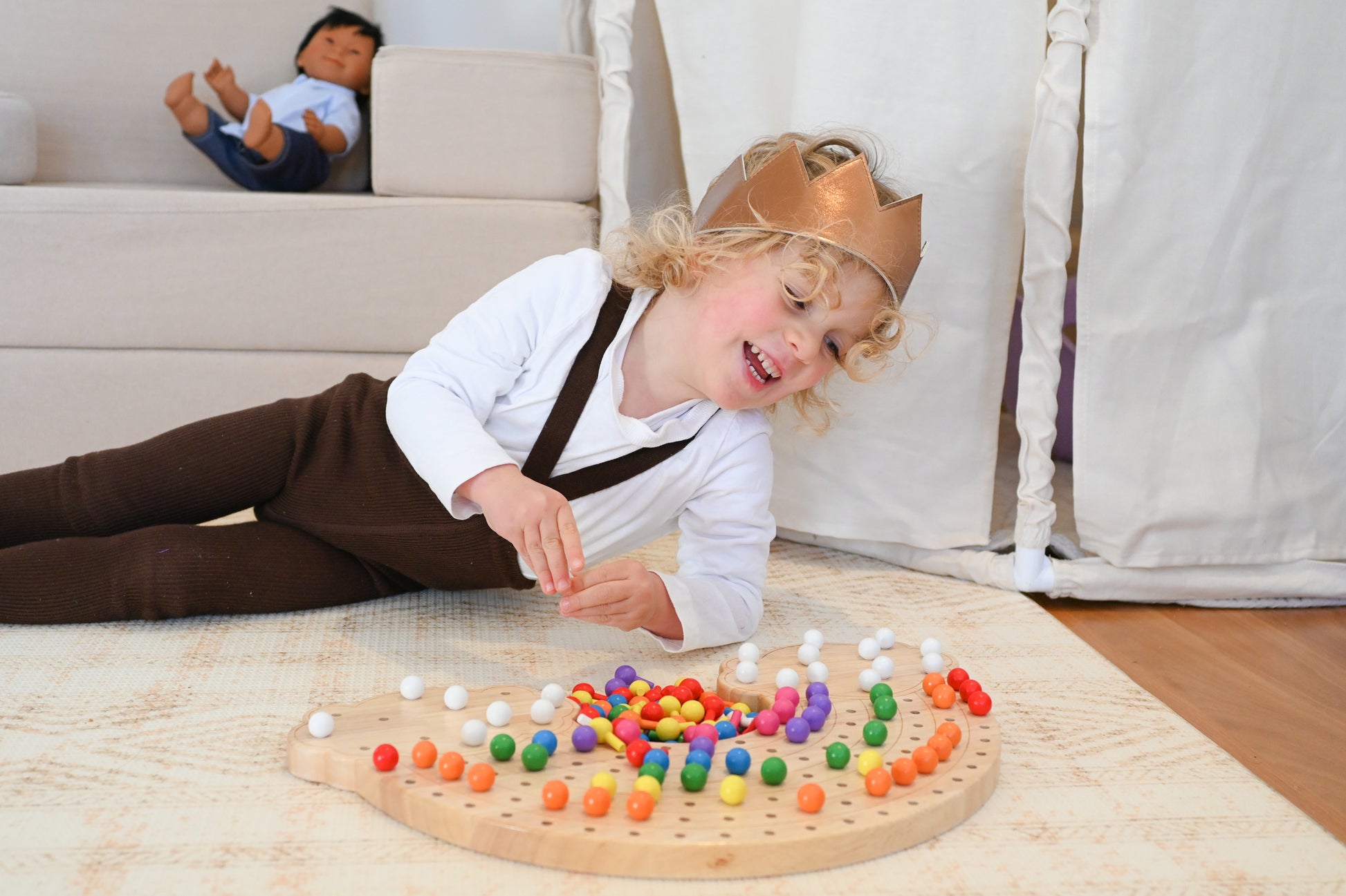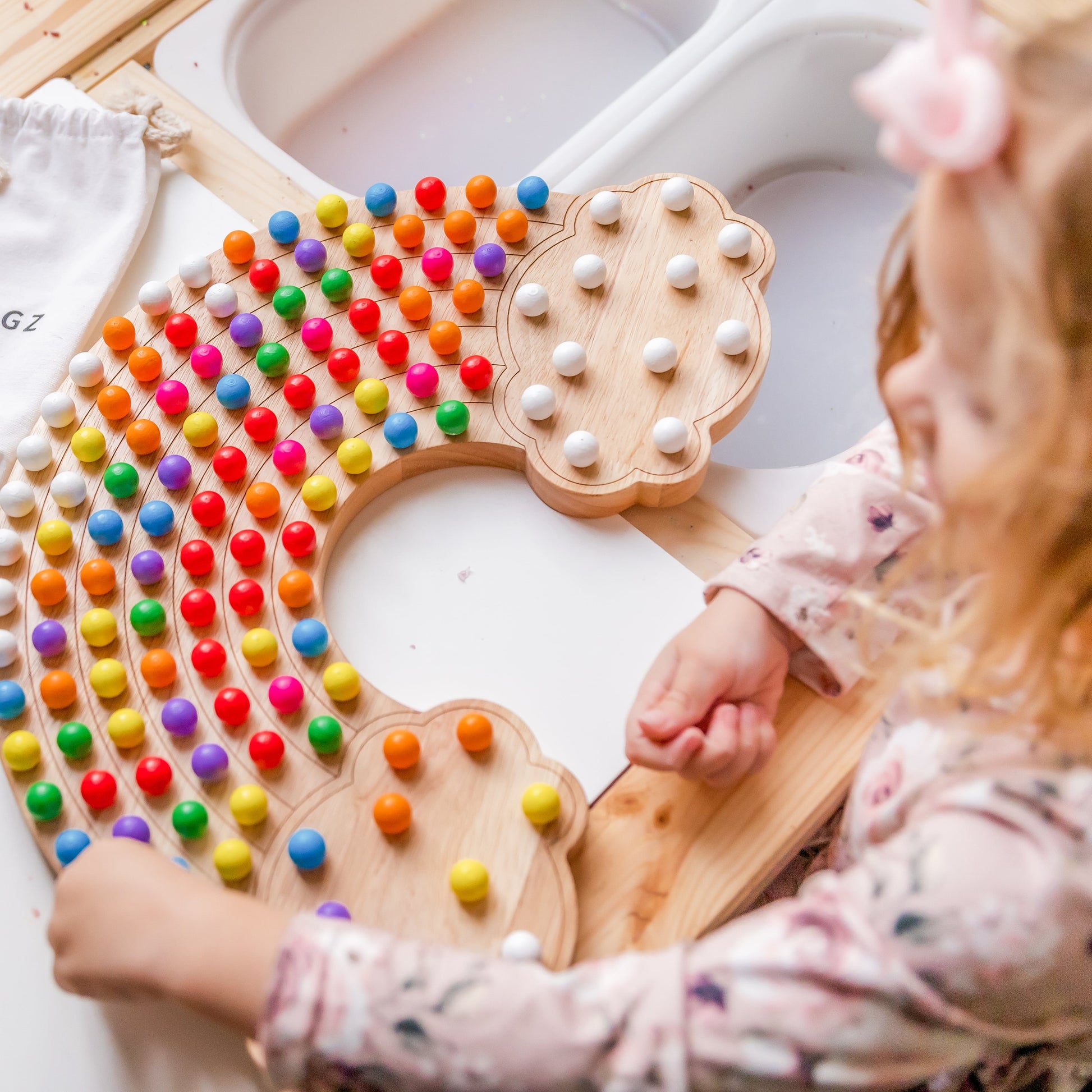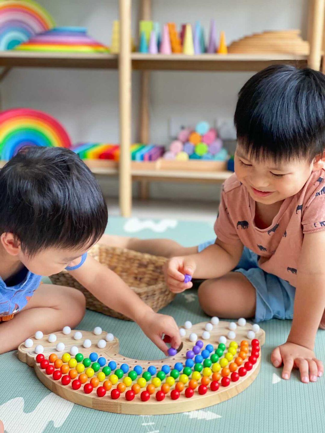 With each arc they complete, watch them experience a sense of pride and joy as each rainbow-coloured peg is a lesson in science, maths, and creativity.